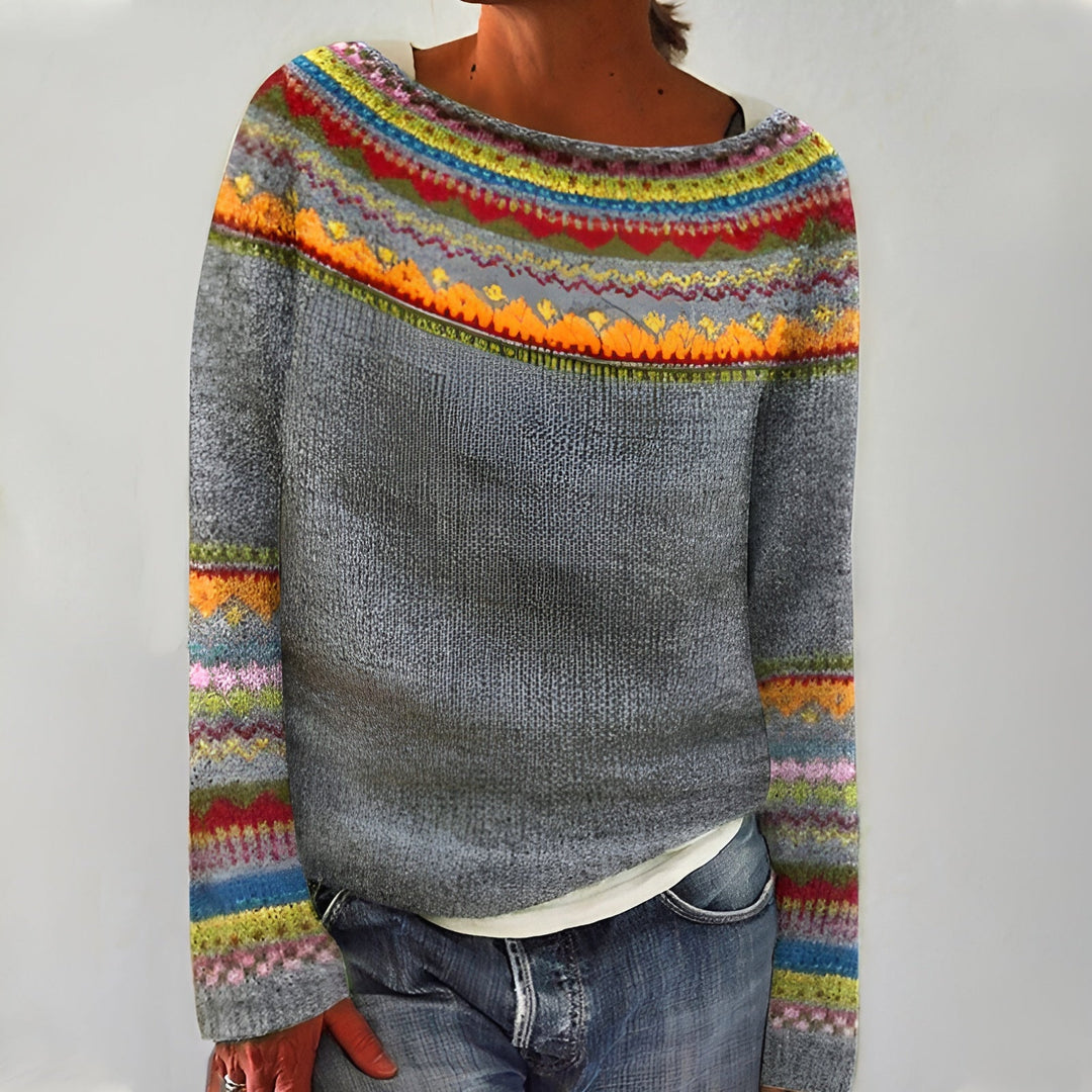 Bella | Knitted Turtleneck Sweater With Forest And Animal Print